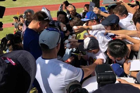 春季キャンプでサインに応じる中日・松坂大輔【写真:福谷佑介】