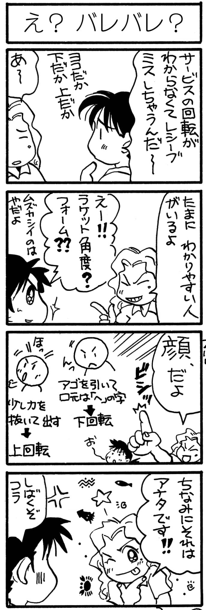 え?バレバレ?【卓球4コマ漫画・レディース卓球24時】
