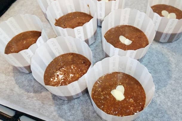 4. 型に3を均等に入れ、余熱後180度のオーブンで20分くらい焼いて完成。