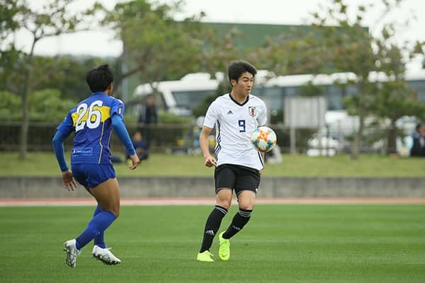 U-20日本代表の強化試合に出場した中村(右)