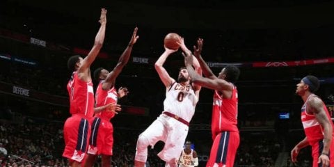 欠場中もチームの若手をサポートキャバリアーズのケビン・ラブが、2月8日のウィザーズ戦で、左足の手術から50試合ぶりに復帰…