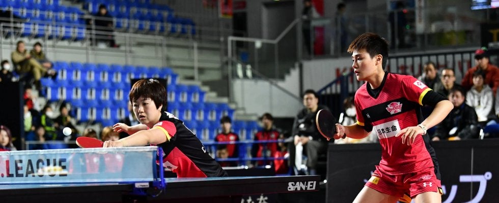写真:常 晨晨(左)/蒋 慧(日本生命レッドエルフ)/提供:Tリーグ