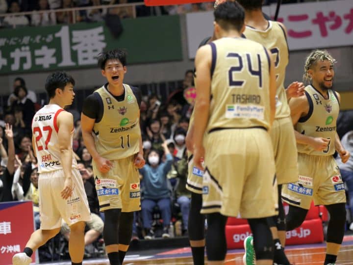 ここから千葉も食くらいついていくが、琉球はゴール下を突くことでオフェンスに深みが生まれたことが、外角シュートにも好循環をもたらす。その結果、終盤には岸本隆一、須田侑太郎の3ポイントシュートが決まり、2桁リードを維持する。