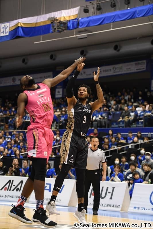 三河にとってアウェーで連敗を喫した秋田ノーザンハピネッツとの雪辱戦は、ハードなディフェンスが信条の秋田のお株を奪うアグレッシブなディフェンスで、三河が終始ペースを握る。オフェンスでも5人が二桁得点をマークする全員バスケットで圧倒した。