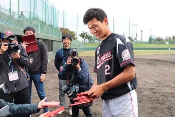 3安打を放った練習試合後にチョコを配布、女性ファンは「私たちも…」 ロッテのドラフト1位ルーキー藤原恭大外野手が、報道陣…