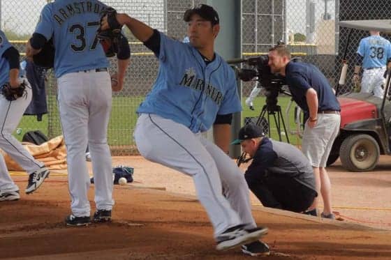 次回はイチローら野手組が合流する16日(日本時間17日)に投げる予定だ。(木崎英夫 / Hideo Kizaki)