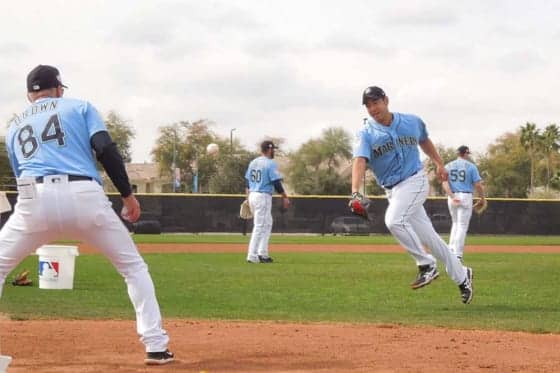 マリナーズの菊池雄星投手は15日(日本時間16日)、アリゾナ州ピオリアでのキャンプ4日目を迎えバント処理を含めた守備練習などで軽めの調整を行った。