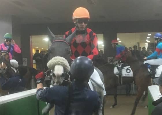 巧みな騎乗を見せた宮崎は「今回初めて乗りました。まだ仕上がっていない印象で、使ってからのタイプかなと思ったのですが、レースでは最後いい脚を使ってくれましたね。砂をかぶっても問題なかったですし、競馬が上手です。こういう条件が合っていると思います」と笑顔で振り返った。