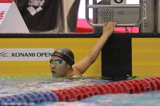 4月は世界選手権で代表に入ることが目標なので、タイムはもちろんあと2秒上げられるように、(そして)順位も2人(長谷川涼香、日大・持田早智、日大)に食い込まなければならないので。