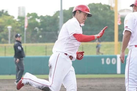 広島の堂林翔太内野手が18日、韓国・起亜タイガースとの練習試合でバックスクリーンへの豪快な2ランを放った。