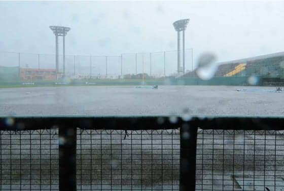 試合開始直前に大雨が降り出し… 19日に沖縄市の「コザしんきんスタジアム」で予定されていた広島とロッテの練習試合は、試合…