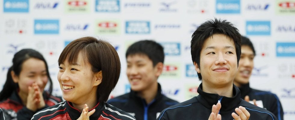 写真:石川佳純(左)・水谷隼/撮影:長田洋平(アフロスポーツ)