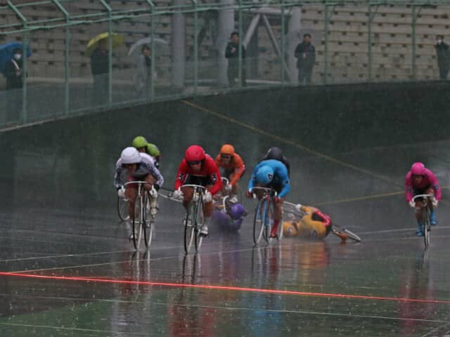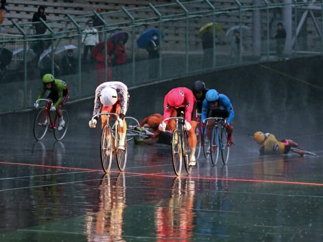 後続では佐藤が小倉と接触して落車、さらに山崎と村田も巻き添えを食う形に。