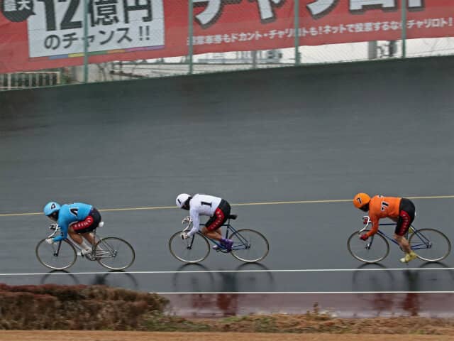山岸、三谷、海老根のS級1班の熾烈(しれつ)な直線勝負。