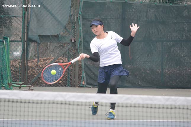 女子シングルスは準々決勝を迎えた。早大からは、前日チーム唯一のベスト8入りを果たした田中李佳(スポ1=兵庫・相生学院)が登場。石野碧(山梨学院大)と相対した。