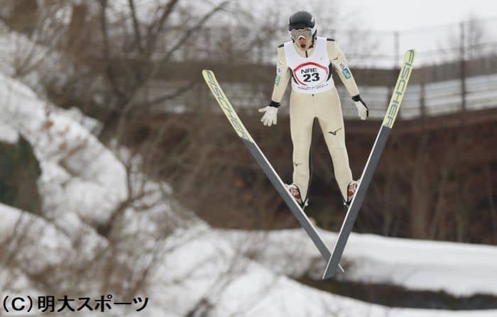 大会3日目は昨年度3位の永峯や国体のコンバイン部門で優勝を飾った三ヶ田などが出場し、表彰入りが期待される。上位を狙うにはジャンプでの好成績が必須条件とどの選手も口にする。その言葉通り先手必勝で明大勢が上位を独占し、高得点を狙う。