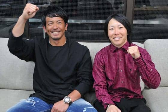 ソフトバンク・松田宣浩(左)と日立ソフトボール部・山田恵里【写真:篠崎有理枝】