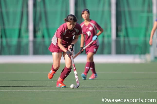 「自分では予想していなかった。」という大学でのホッケー生活。これまでホッケーに打ち込んできた分、大学では勉強も頑張りたいと思っていたとき、巡ってきたチャンスを掴み文武両道を目指せる早大へ入学。OB・OGのサポートや練習環境に恵まれ、周りに気を配れなかったと反省点を挙げながらも競技に打ち込み、フィールドを縦横無尽に駆け回った。1年次から守備として試合に出場し3年次には副将という立場も経験した。