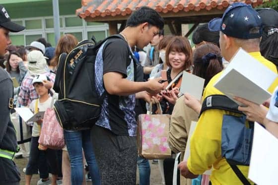 この日はずらりと並んだファンすべてのサインに応じている間に、様々な声を掛けられた。「札幌ドームでお待ちしています!」と女性ファンから激励され「頑張ります!」と柿木は元気良く応じた。