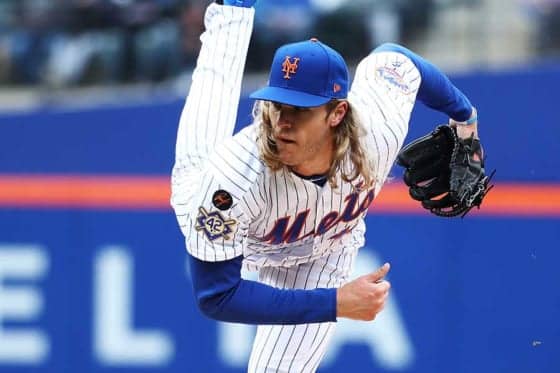 最速163キロの剛速球を誇るメッツのノア・シンダーガード投手。メジャー5年目の今季は昨季サイ・ヤング賞を受賞したジェイコブ・デグロム投手とメジャー屈指の2枚看板を形成。4年ぶりのリーグ制覇へ大車輪の活躍が期待される。
