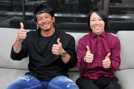 ソフトバンク・松田宣浩(左)と日立ソフトボール部・山田恵里【写真:篠崎有理枝】