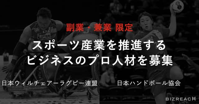 転職サイト「ビズリーチ」は、日本ウィルチェアーラグビー連盟(JWRF)と日本ハンドボール協会(JHA)の計6職種の公募を副業・兼業限定で開始した。