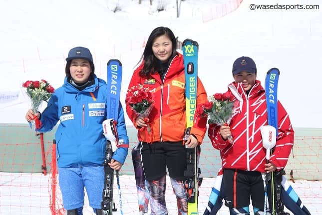アルペン女子は最終種目である回転が行われ、早大からは石島が2位入賞を決めた。先日の大回転でも8位入賞をしていた石島だが、「全種目で不甲斐ない結果で終わってしまった」と、本人の表情には悔しさが強く表れていた。1本目を終えて2位につけ、迎えた2本目。29番目の滑走ということもあり「コース状況が良くない中、序盤で少し失敗してしまった」(石島)。フィニッシュ後、一時トップに立ったが、次の小番(日体大)に0.11秒タイムを上回られ、惜しくも優勝とはならなかった。また、スーパー大回転で入賞の松本なのは(スポ2=北海道・札幌第一)は2本目にラップタイムをマークしたが1本目のミスが響き合計12位と伸びず。上位を狙っていただけに不本意な結果で今季のインカレに幕を閉じた。2人は3月2日からロシア・クラスノヤルスクで開催される第29回冬季ユニバーシアードに出場する。この悔しさをバネに世界でさらなる飛躍を遂げたいところだ。