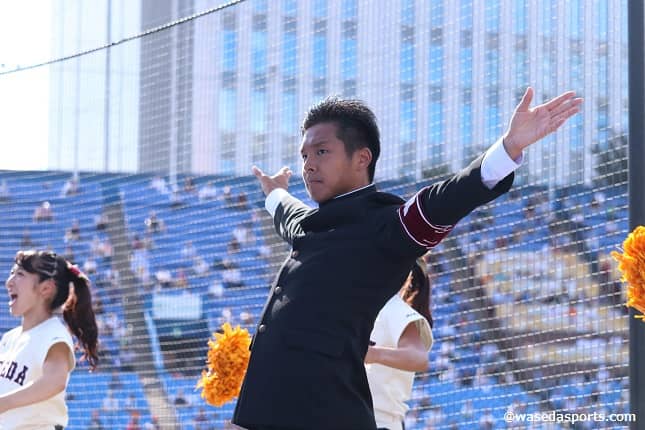 泣き虫で、人前に出るのが恥ずかしかった少年は、いつしか応援に魅了され、自らも応援で人を魅了するリーダー部員になっていた。「誰にでもできることを誰よりも全力でやるからこそ、体育各部を応援させて頂く資格がある」という強い信念を持って渡邊友希(政経=静岡・沼津東)は主将としての一年間を駆け抜けた。学ランを脱いだ背中は、現役時代と変わらずいつでもしゃんと伸びている。渡邊の応援に捧げたこれまでを振り返る。
