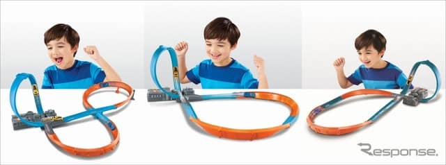 新製品「HW 8 トラック レースウェイ」は、ブースターが付いた迫力満点のトラックセット。3通りのコースを組み立てて遊ぶことができ、複数を同時に走らせて、スピード感のあるミニカー遊びを楽しむことができる。ジャンプ台を飛ぶミニカーは迫力満点。ミニカーファンの子どもから大人のコレクターまで、幅広いホットウィールファンが楽しめる商品となっている。