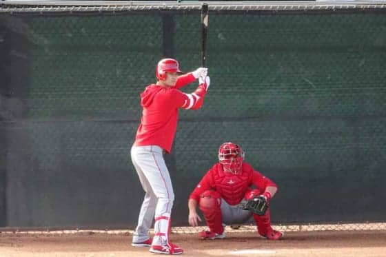 昨年10月初旬に右肘内側側副靭帯再建術(トミー・ジョン手術)を受けた影響で今季は打者に専念するエンゼルスの大谷翔平投手が27日(日本時間28日)、米アリゾナ州テンピの球団施設でリハビリ。2日連続でブルペンで打席に入って球筋を確認した。昨季10勝を挙げたバリアの球を計22球。「各投手タイミングも違いますし、球質も違う。まずは投手との距離感だったりとか、タイミングをしっかりと。打ちはしないですけど、ポイントまではかる、ということじゃないかなと思います。いろんな投手のタイミングを一発で。初めて見た投手に対して、どういう風に見えるのかがすごく大事かなと思います」と話した。