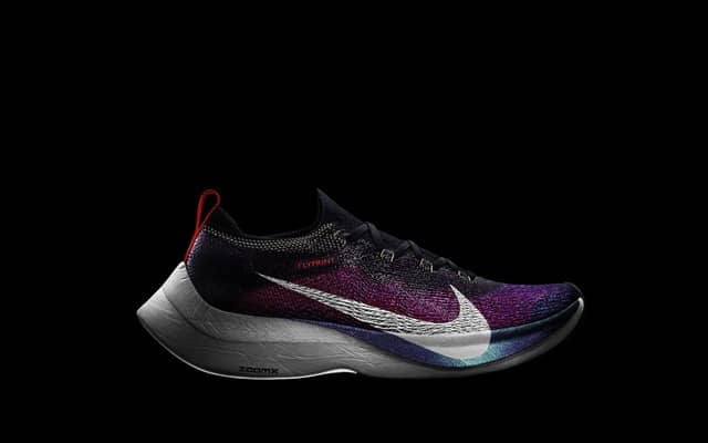 ナイキ ズーム ヴェイパーフライ エリートが水を吸い、大雨で水分が蒸発しないため、シューズが予想より重くなったことを受け、実験を行なっていた3Dプリントを活用したアッパーを採用。キプチョゲは2018年4月に開催されたロンドンマラソンで、新しいアッパーを採用したナイキ ズーム ヴェイパーフライ エリート フライプリントを着用して優勝した。