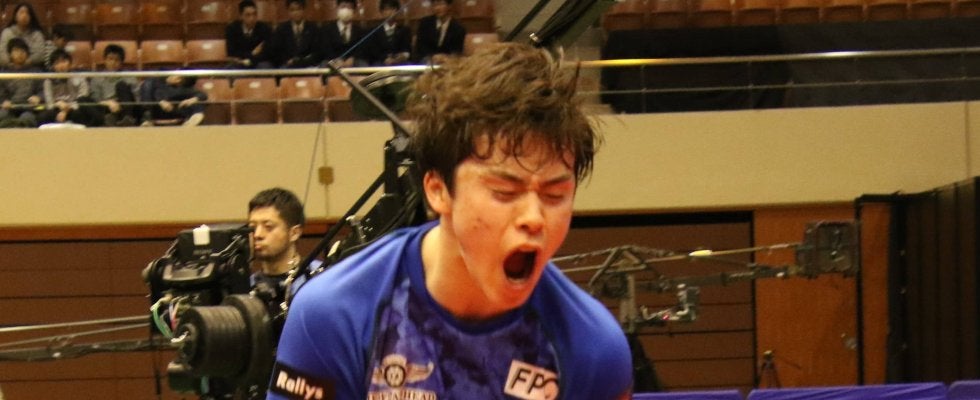 写真:森薗政崇(岡山リベッツ)/撮影:ラリーズ編集部<LIONカップ 第23回ジャパントップ12卓球大会(兼2019年世…