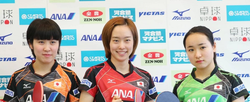 写真:左から平野美宇、石川佳純、伊藤美誠/撮影:YUTAKA・アフロスポーツ