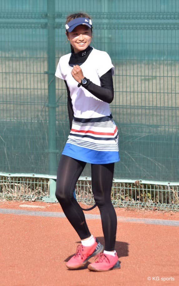 <写真・8強進出を決めた明河> 3月5日、大阪府万博テニスガーデンにおいて、平成30年度関西学生新進テニストーナメント(…