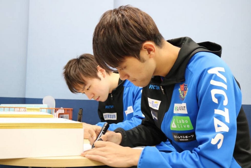 5日、卓球男子の丹羽孝希と吉村和弘がアドバイザリースタッフを務める卓球メーカーVICTASの新商品展示会(於:T4 TOKYO)に登場し、卓球ショップ関係者限定のサイン会を実施した。