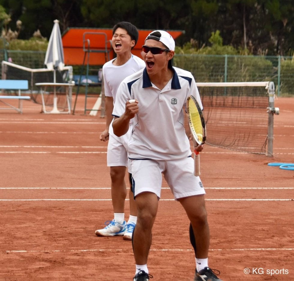 <写真・勝利を決め、雄叫びをあげる栗山(右)・天野組> 3月6日、大阪府万博テニスガーデンにおいて、平成30年度関西学生…