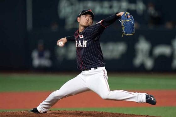 メキシコ戦に2番手としてマウンドにあがったオリックス・山岡泰輔【写真:Getty Images】