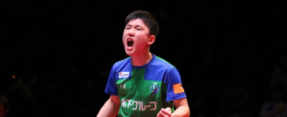 写真:張本 智和(木下マイスター東京)/撮影:ラリーズ編集部17日ノジマTリーグの「プレーオフファイナル」。男子第1マッ…