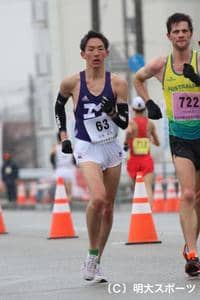 冷たい雨の中開催された全日本競歩能美大会。明大からは4人の選手が出場し、チームトップの古賀友太(商1=大牟田)が全日本…