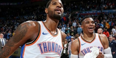 3月16日にはケビン・デュラント不在のウォリアーズに88-110で敗れたものの、ジョージとウェストブルックのデュオを中心に、ディフェンスに優れる選手を多く擁するサンダーなら、プレーオフで王者を苦しめられるという意見も多い。