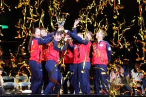 写真:優勝を喜ぶ日本生命レッドエルフのメンバー/撮影:ラリーズ編集部