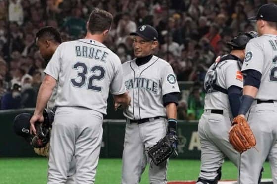 【MLB】イチロー、4回守備から途中交代で球場騒然 チームメートと握手&ハグで退く