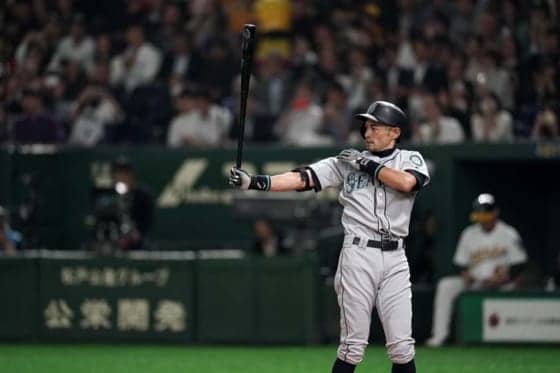 マリナーズのイチロー外野手は20日、東京ドームで行われたアスレチックスとの「2019 MGM MLB日本開幕戦」に「9番・右翼」で先発。打席内容は二飛、四球で、4回守備からベンチへ退いた。