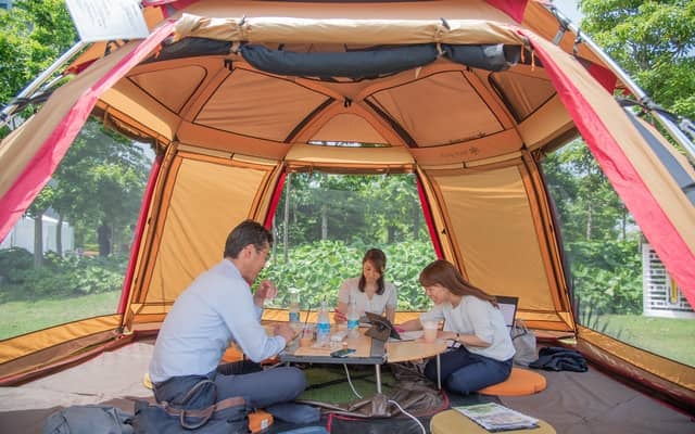 テントやタープをワークプレイスとして利用できる「品川アウトドアオフィス」4月開催