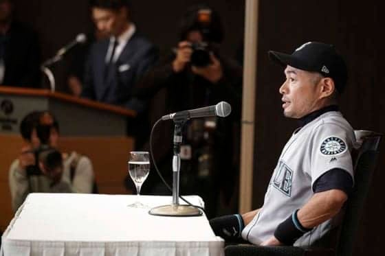 現役引退会見に臨んだマリナーズ・イチロー【写真:AP】