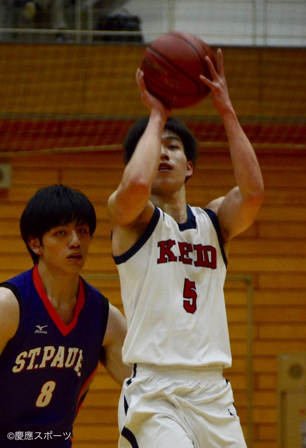 第2Q、先制点を許すも激しいディフェンスを継続した慶大は髙田が得点、そして泉のスティールから岩片悠馬(新環3・広尾学園)が得点を決め一歩も譲らない姿勢を見せる。このQの後半は途中出場の甲谷勇平(新環3・東山)が3ポイント、フリースローとしっかりと得点を決め36―37で後半へ。