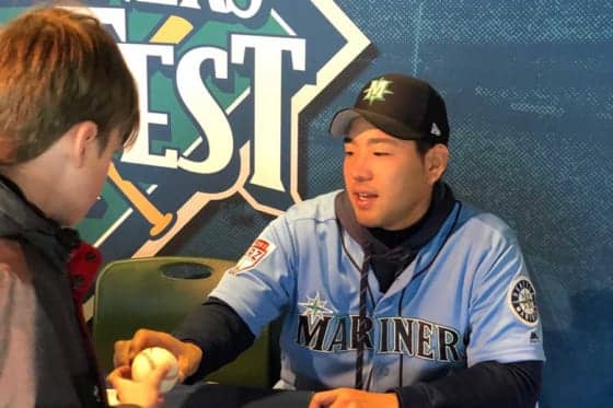 マリナーズの菊池雄星投手は24日(日本時間25日)、本拠地シアトルで行われたファンフェスタに臨み、同僚投手らとサイン会を行いファンと触れあった。