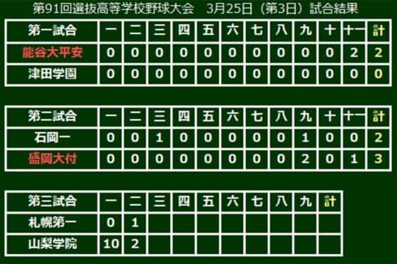 第91回選抜高校野球大会は25日、大会3日目が行われ、第3試合で山梨学院が初回に大量10点を奪う猛攻を見せた。