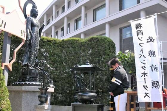 鷹観音には「ケガがないように」と祈願 26日、ヤフオクドームで福岡ソフトバンクホークスの全社員と工藤公康監督と選手が一堂…