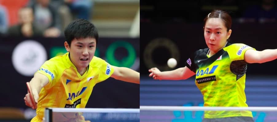 写真:張本智和(JOCエリートアカデミー・左)と石川佳純(全農)/撮影:ittfworld<ITTFワールドツアープラチ…